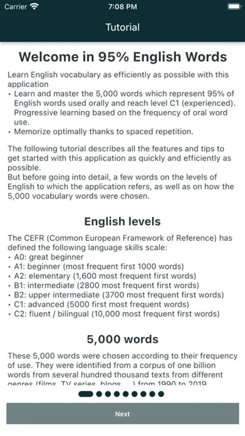 Learn the 5,000 English vocabulary words representing 95% of commonly spoken English and equivalent to international level C1.