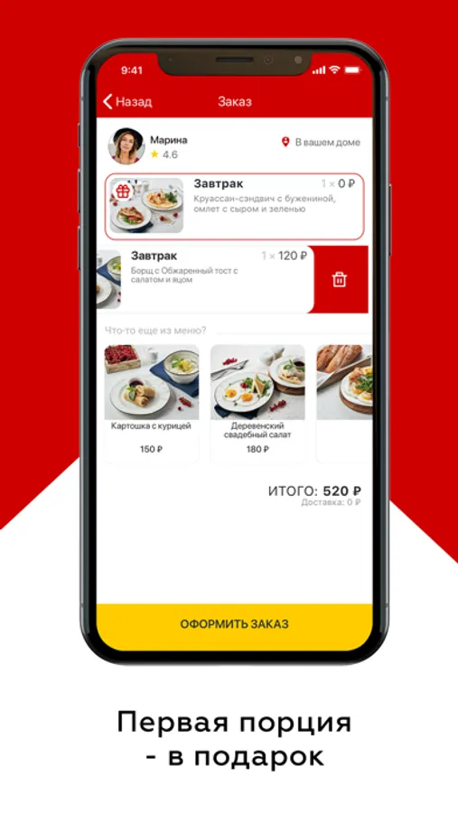 Первая порция еды “на пробу” доставляется в подарок.