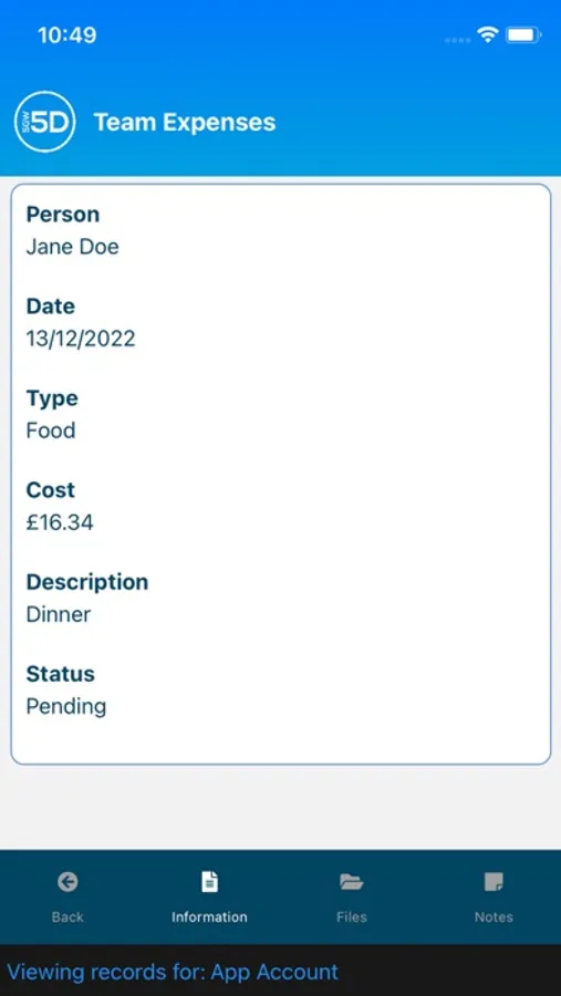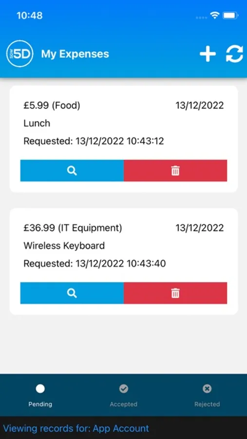 Allows staff to create expense requests, as well as view their Pending, Accepted and Rejected Requests. They can also cancel requests, or upload supporting evidence, as well as add notes to requests.