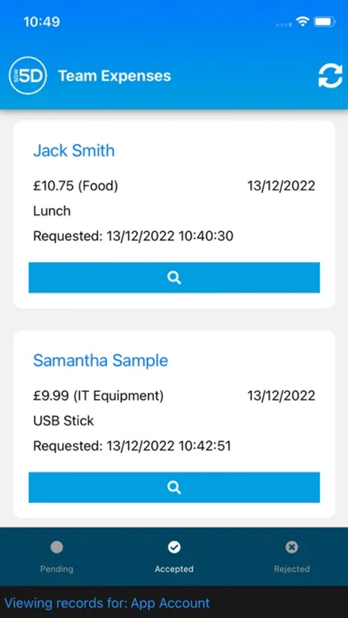 It also allows Managers to view their teams Expenses and Accept or Reject a request