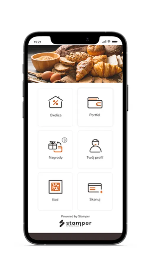 • Pieczątki możesz zbierać skanując swój kod użytkownika wyświetlony w aplikacji skanerem przy ladzie lub skanując kody QR wydrukowane na paragonach skanerem w aplikacji.
