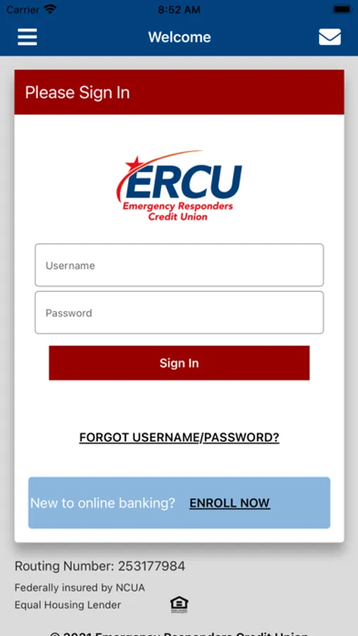 To sign in to the app, use your ERCU online banking username and password. If you have not established a username and password yet, select “Enroll Now” to get started.