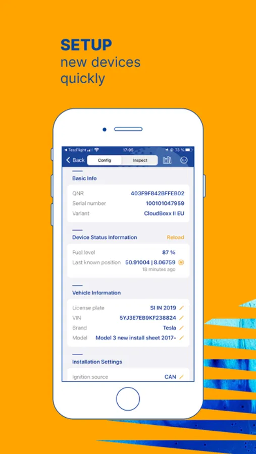 Simply follow the workflow in the app to set-up your telematics devices. Your smartphone is all you need.