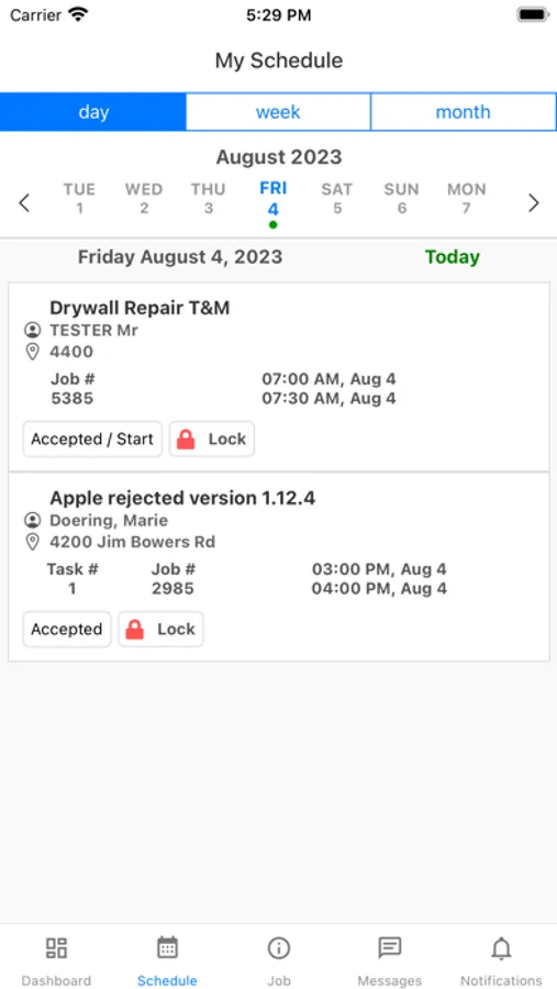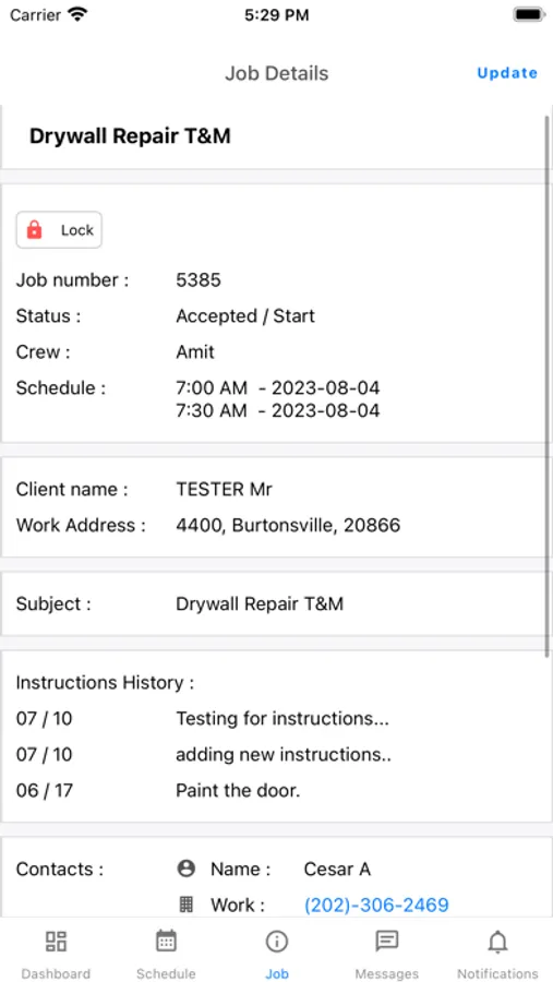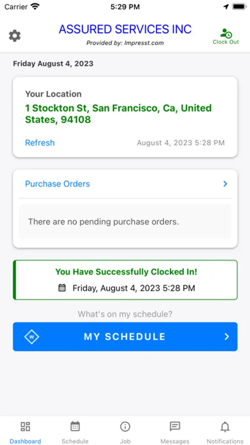 Features including Scheduling, clock in, clock in, location tracking, job and task details, and job/task help the mobile user be efficient and productive.