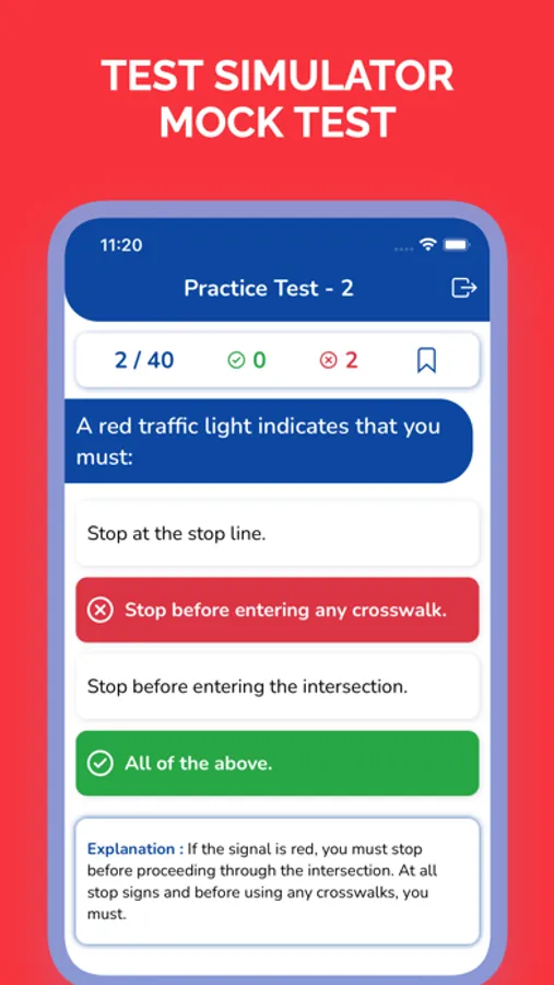 Another important feature of the app is its practice questions. These questions are designed to help you prepare for the real DMV test by simulating the types of questions you'll encounter on the exam. This app includes questions based on official Minnesota DMV state manual. With practice questions covering everything from road signs to traffic laws, you can be confident that you're fully prepared for your license test.