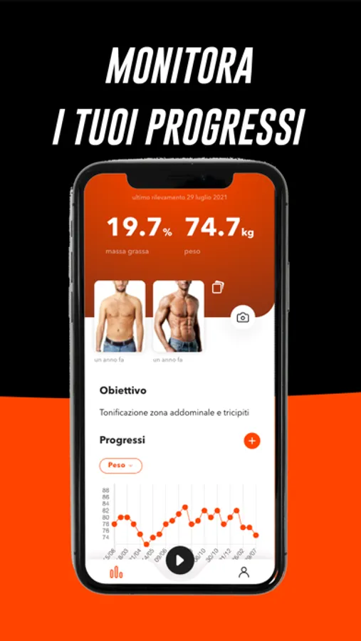 Avrai sempre sotto controllo la tua attività fisica: potrai visualizzare quali esercizi sono previsti nel tuo piano di allenamento, i tuoi progressi e come cambia il tuo fisico nel corso del tempo.