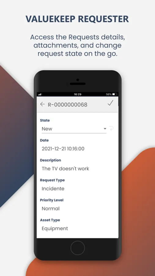 Valuekeep Requester CMMS, the best way to request maintenance on the go. Intended for maintenance requesters.