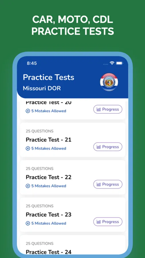 Download, Practice, Pass the 2023 Driver's DMV knowledge Permit Test for Missouri and get driver’s license and ID card for the state.