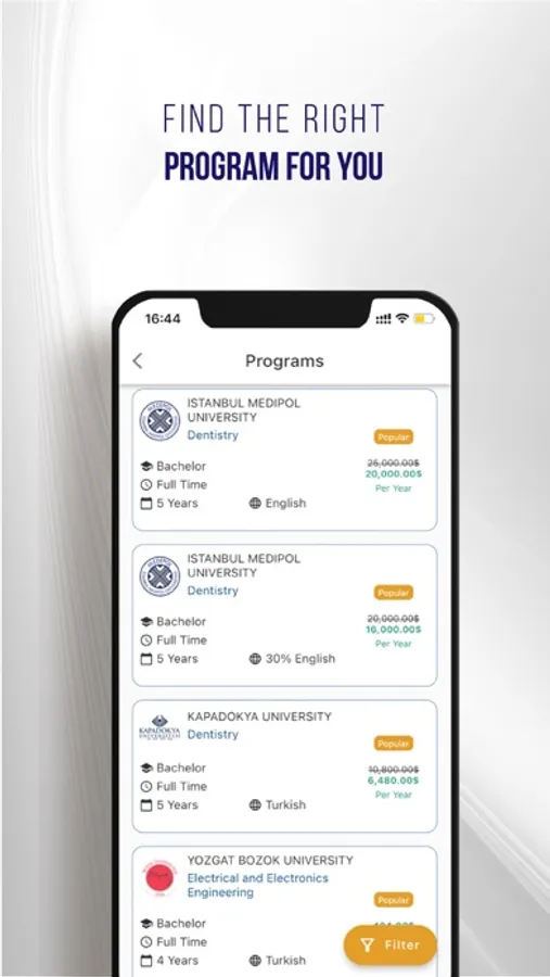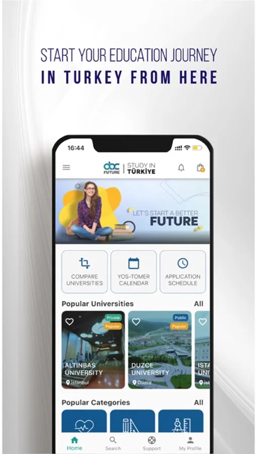 Thanks to the application, you will find everything you need to know to study in Turkey, the best and latest information, more than 200 outstanding universities and hundreds of program options, discover the right program for your potential, apply to the university, scholarship opportunities and important tips for students on the educational path.