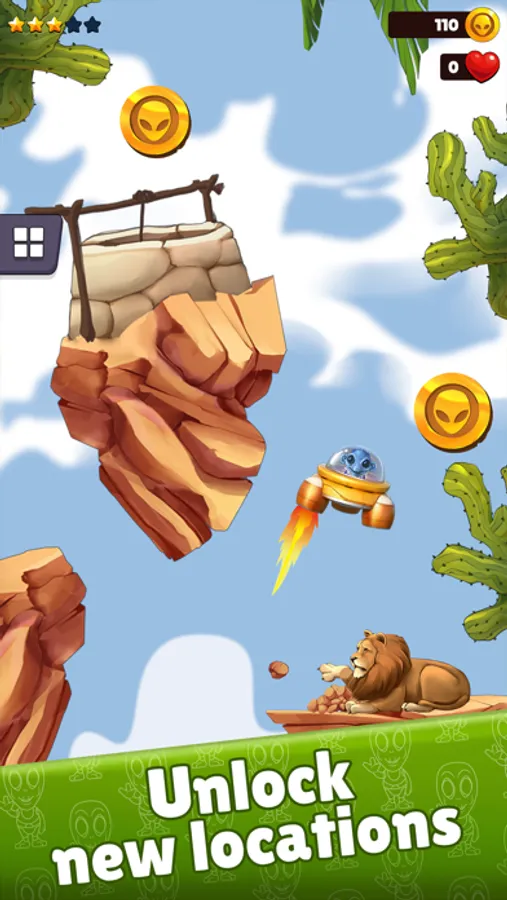 Upgrade and decorate! Unlock new flying saucers and bizarre characters!
