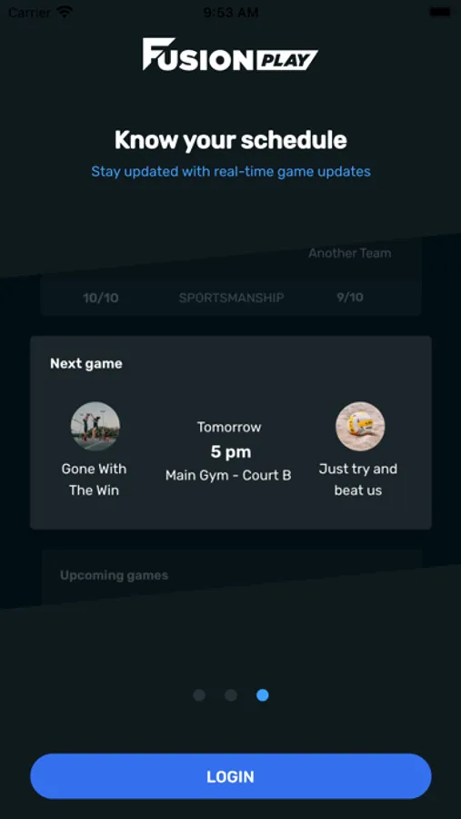 Get in the game with Fusion Play! Connect with friends at your school to create intramural teams, manage your rosters and get all the info on upcoming sports! The Play app's push notifications and real-time team stats and rankings will keep you in the loop on what's happening with all your teams. Download Fusion Play and start playing today!