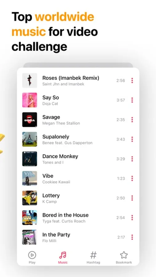 Find and record videos with the world's most popular music. Stand out from other videos.