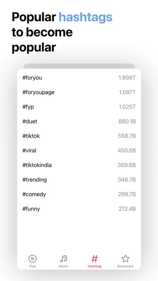 Weekly collection of hashtags. Add hashtags to your videos to promote.