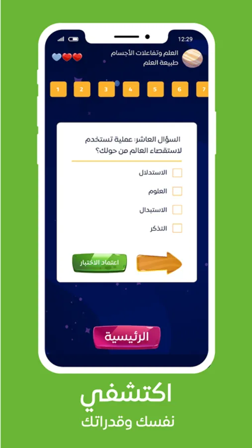 تطبيق تفاعلي وتعليمي يساعد الطالبات على متابعة مادة العلوم للصف الأول المتوسط من خلال عرض وتقديم الاختبارات بطريقة تفاعلية و جذابة تجمع بين التعلم الممتع واللعب .
