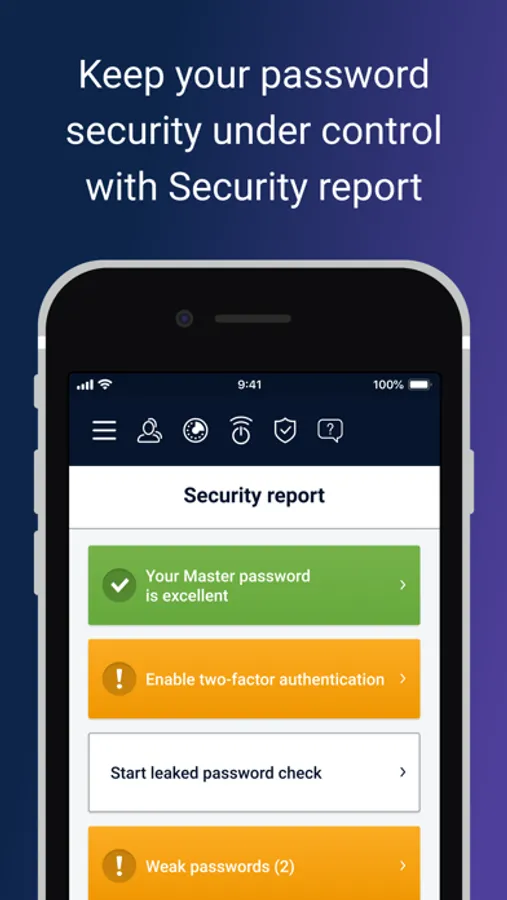 • Your very own password strength advisor – we believe in “better safe than sorry”, so we provide you with a password strength check that tells you immediately if a password needs more complexity. Plus, we have the hassle-free option to generate random and extremely complex passwords with a single click if that works better for you.