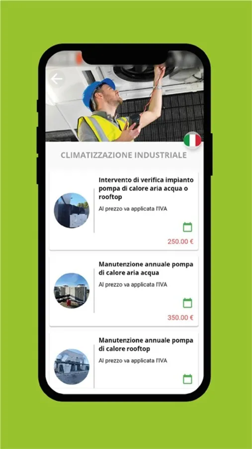 Questa App è dedicata realizzazione di impianti di climatizzazione, assistenza tecnica e manutenzioni di tutti i tipi di impianti in luoghi come supermercati, ipermercati, ospedali, cliniche private e cantine.