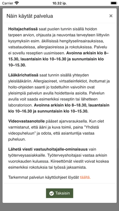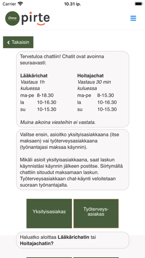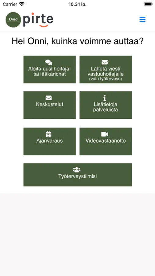 OmaPirten palveluihin kuuluvat lääkärichat, hoitajachat, videovastaanotto sekä työterveyshuollon viestipalvelu.