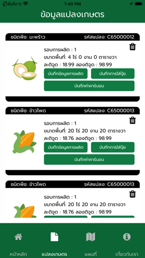 Application สำหรับแสดงผลข้อมูลการวิเคราะห์การกักเก็บคาร์บอนในดินแต่ละระดับความลึกในแปลงเกษตรตามชนิดพืชที่ปลูก ซึ่งข้อมูลที่แสดง ประกอบด้วย อินทรีย์คาร์บอน แอกทีฟคาร์บอน ความหนาแน่นของดิน เนื้อดิน คาร์บอนอินทรีย์ละลายน้ำเย็นได้ และคาร์บอนอินทรีย์ละลายน้ำร้อนได้