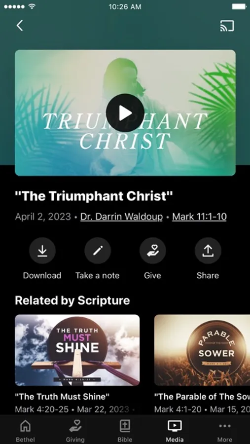 The Bethel App will help you stay connected with the day-to-day life of our church. With this app, you can: watch or listen to live and past messages; stay up to date with push notifications; share your favorite messages via Twitter, Facebook, or email; download messages for offline listening, and much more. It is our prayer that this App will help you in your day to day walk with the Lord, and to aid in your church community.
