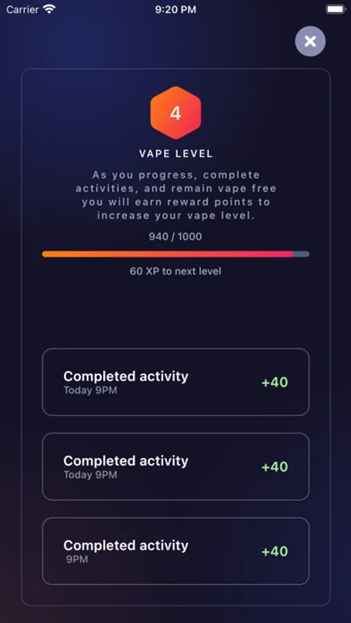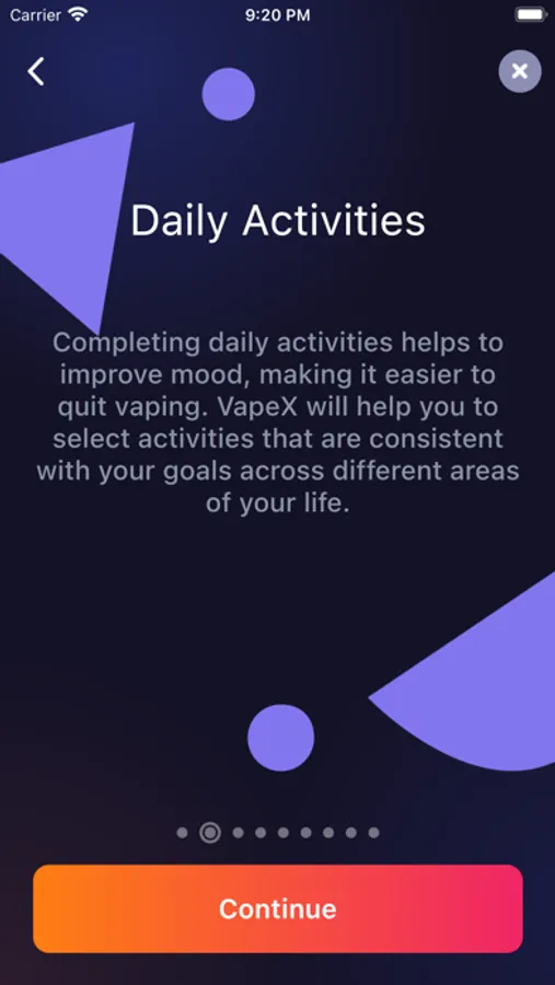Are you having trouble quitting vaping? Are you feeling down, frustrated, tired, or bored? VapeX helps you quit vaping by helping you do things that improve your mood and avoid the negative feelings that make you want to vape and make it tough to quit. Lots of people who vape say that when they feel down, depressed, bored, angry, or irritable, that makes them want to vape more. VapeX will help you identify and complete activities that improve your mood and in turn make it easier to quit vaping for good. VapeX is based on an evidence-based treatment called Behavioral Activation, which is one of the most researched treatments for depression, anxiety and stress with positive results from over 15 research studies conducted all over the world. VapeX will get you feeling better and accomplishing more by helping you achieve your big goals with small manageable steps.