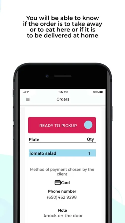 You will be able to know if the order is to take away or to eat here or if it is to be delivered at home