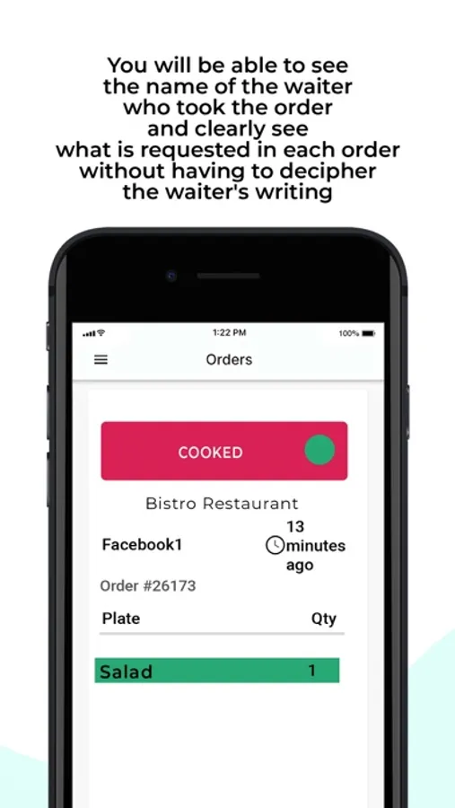 You will be able to see the name of the waiter who took the order and clearly see what is requested in each order without having to decipher the waiter's writing