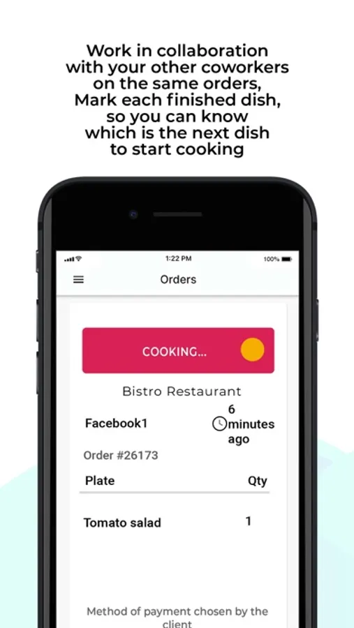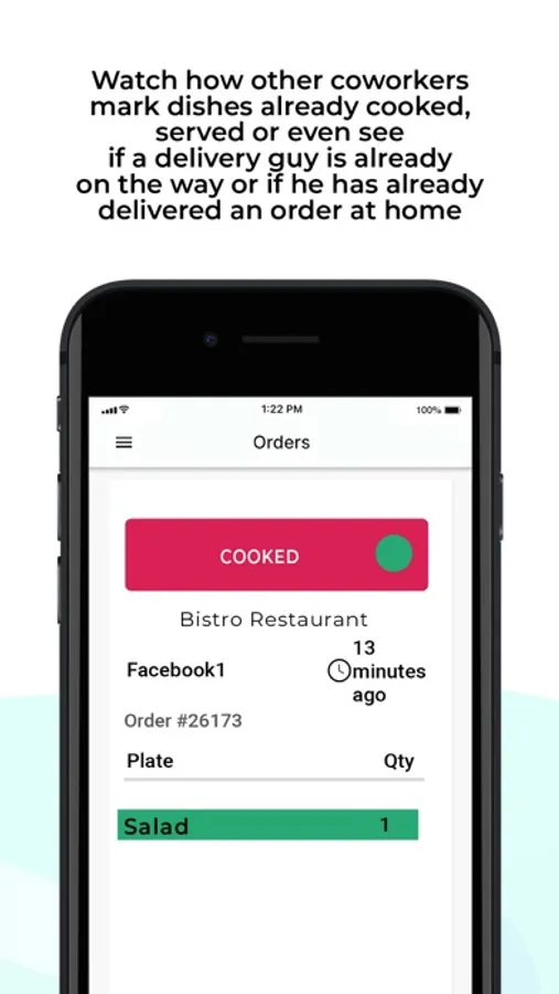 Watch how other coworkers mark dishes already cooked, served or even see if a delivery guy is already on the way or if he has already delivered an order at home
