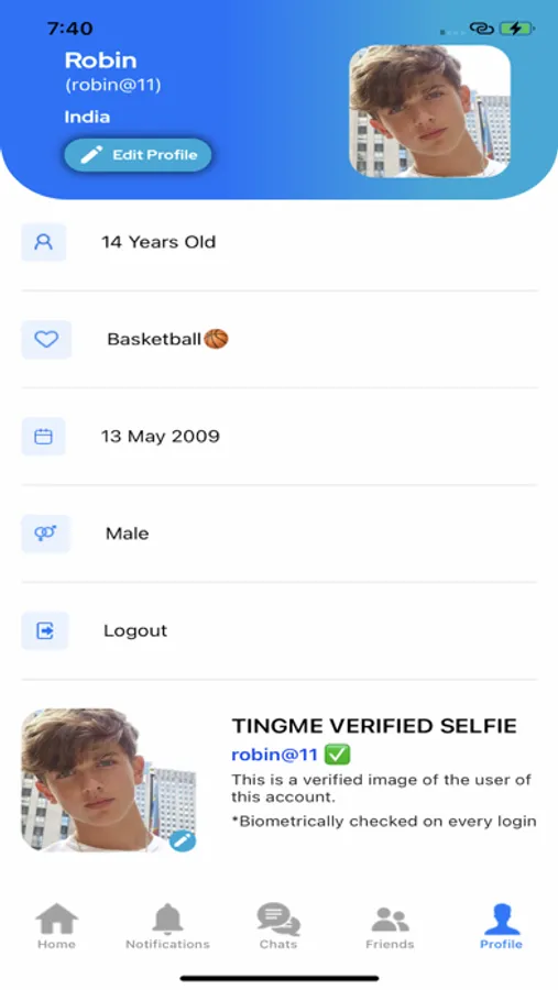 After the TingMe profile is completed by parent - Kids can only post using their FaceID or Fingerprint (as a send button) to upload all photos,Videos and text chats with friends. No other person will be able to post from their TingMe account. This process will apply to all TingMe users ensuring that the child is the age stated on their profile as vouched for by their parent who’s ID has been verified.