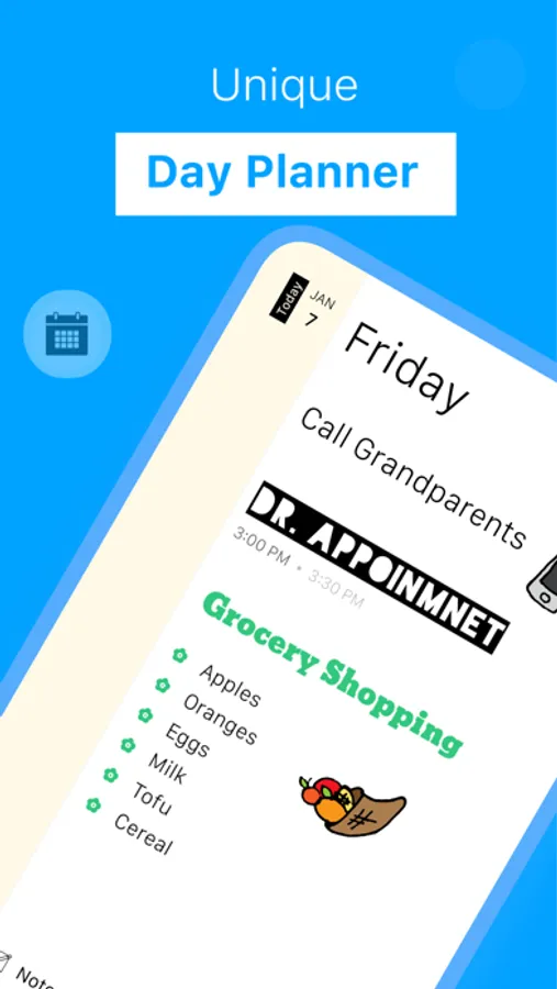 ◉ INSPIRE YOUR DAYSCreate calendars personalized to you. Personalize your daily schedule with fun hand drawn stickers, emojis, colors, themes, and inspire each day.