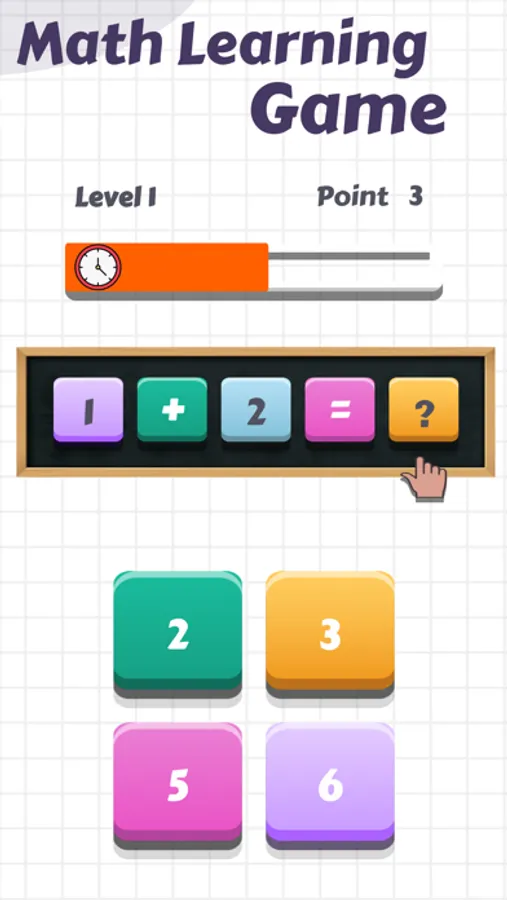 In this math game if you solve one math problem in a few seconds you can earn one point and when you earn points then you win one level.