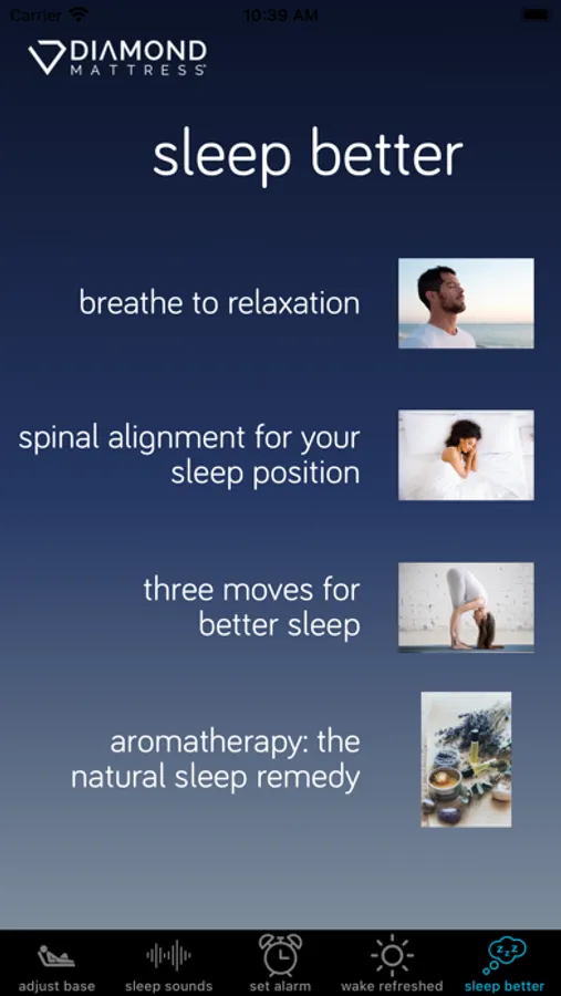 Sleep has the power to change our lives. It’s the path to feeling more fulfilled and finding a deeper connection to the beauty of life. Diamond Mattress created an app to fully control your adjustable base settings as well as provide useful sleep related content.