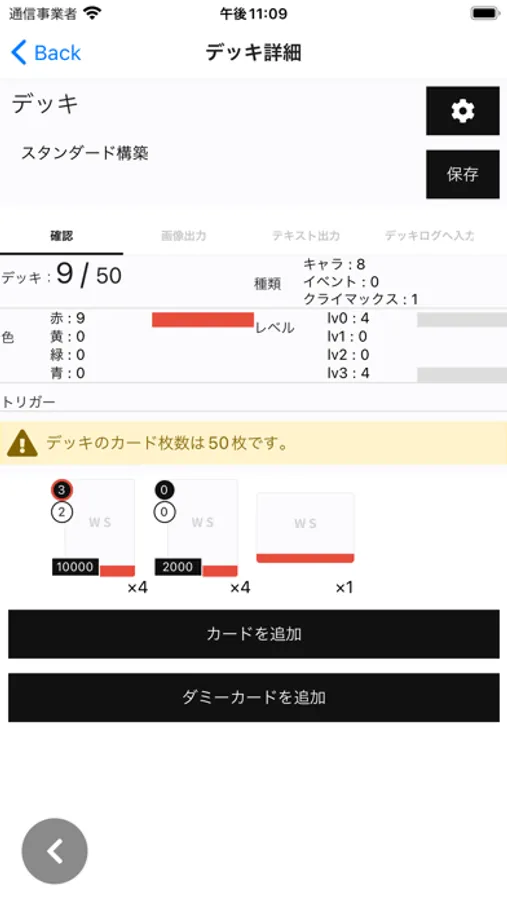 作成したデッキは画像やテキスト、CSVで保存できます。