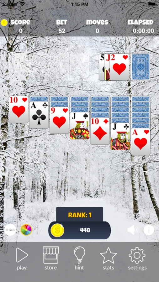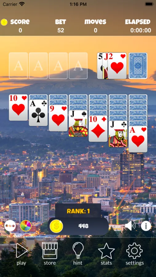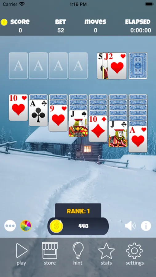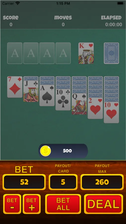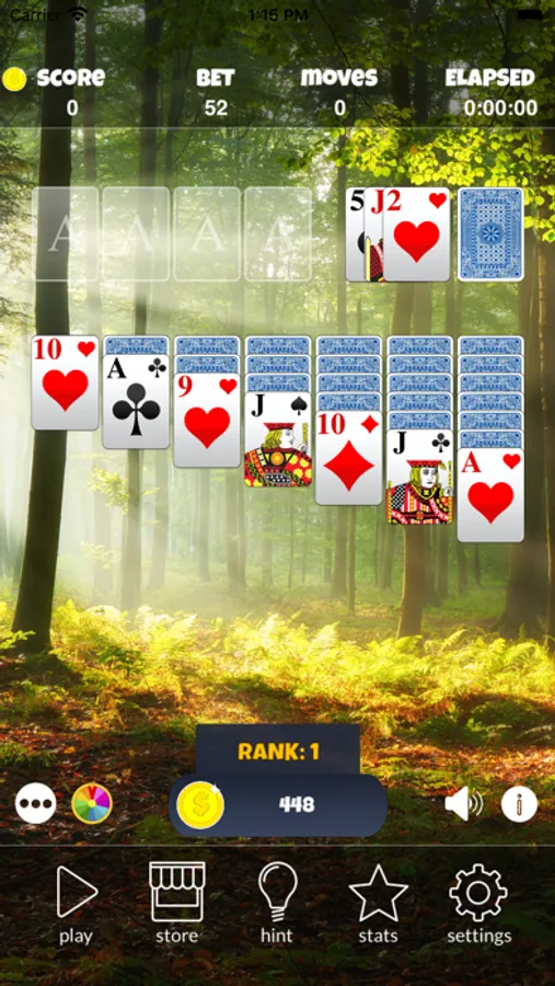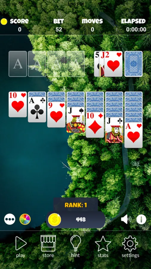 Feeling lucky? Place your wager before each game. Minimum wager is 52 coins. Each card to the Foundations will earn you 5 coins, bringing in 260 coins with a win of the game! Wager more to win BIG!