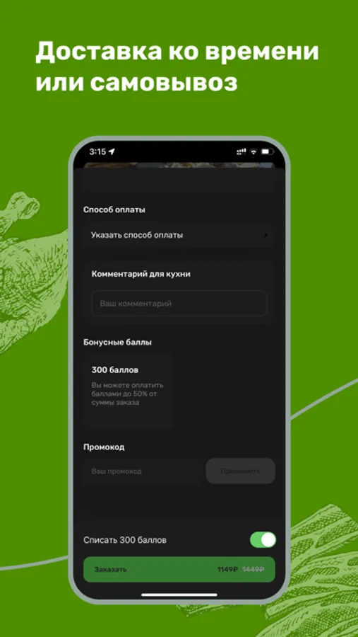 Мы также позаботились, чтобы с каждого заказа вы получали кешбек 5% в виде баллов, которые можно потратить при оплате следующего заказа.