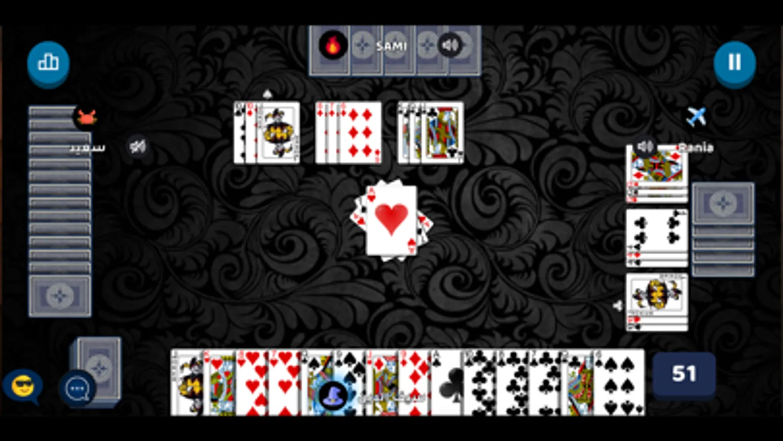 Hareeg 14 is a card game in which four (or more) players are pitted against each other, the winner is the one who can get all the others eliminated. In each round of Hareeg, you need to reduce the number of cards in your hand by trying to put them down on the table according to specific rules.