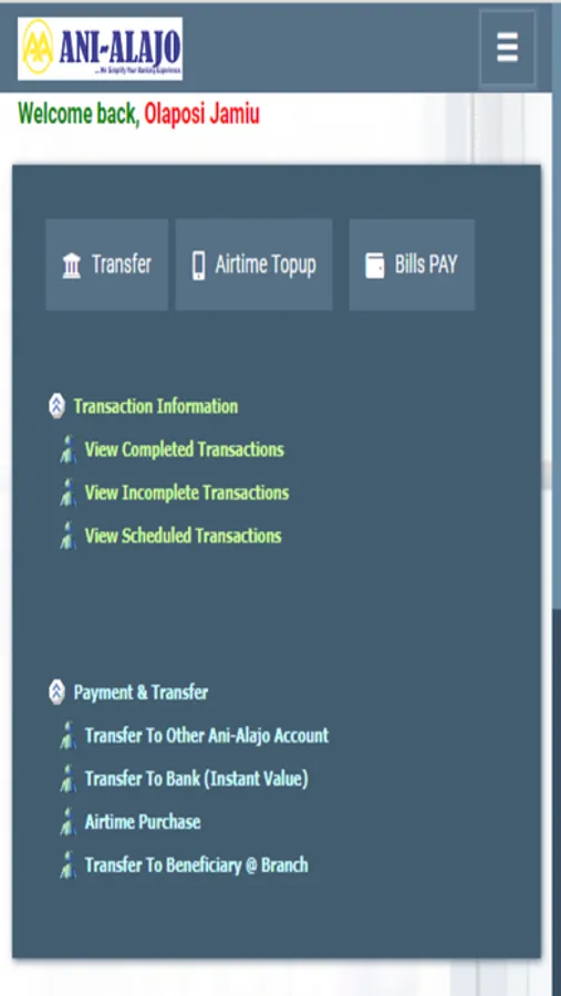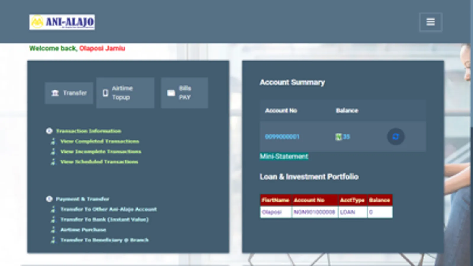 Anialajo App is an online wallet platform for our esteem customer to perform all allowable wallet transactions such as Balance Check, Transaction history and top-up.