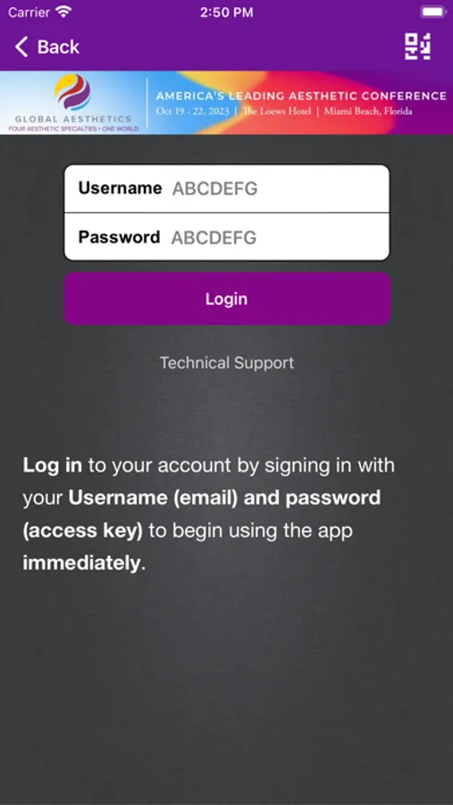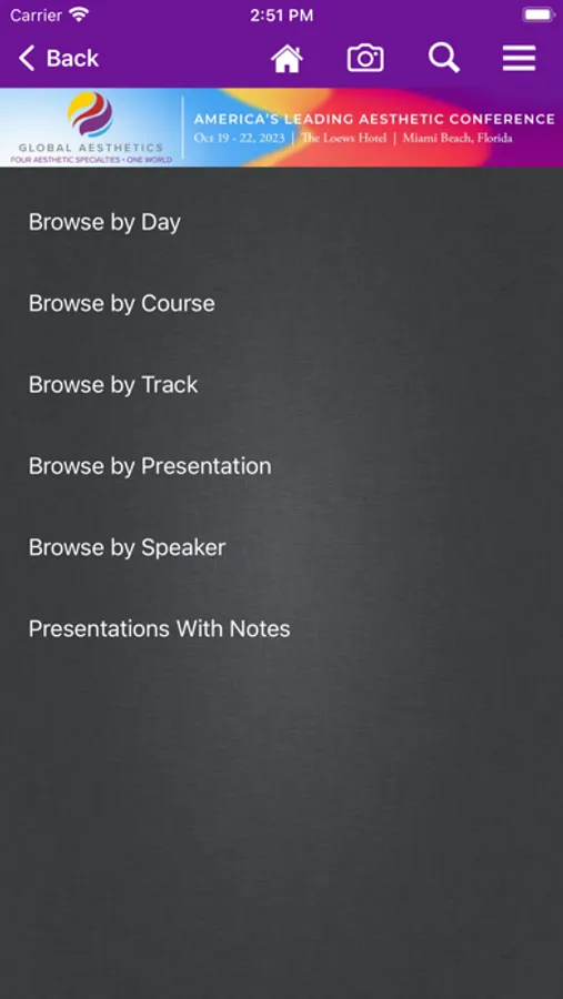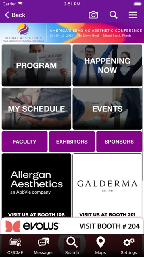 The Global Aesthetics Events mobile app lets you view schedules, presentations, exhibitors, and speaker details. You can take notes on presentations and draw on slides and handouts. If you opt-in, you can share your contact information with attendees and exhibitors you meet at the event.