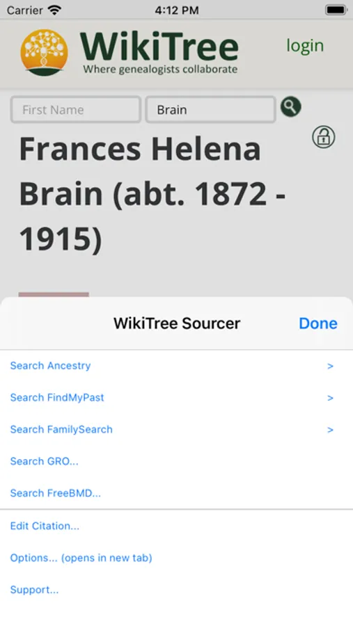 1. From a WikiTree profile page it provides the ability to search other genealogy websites for relevant records.