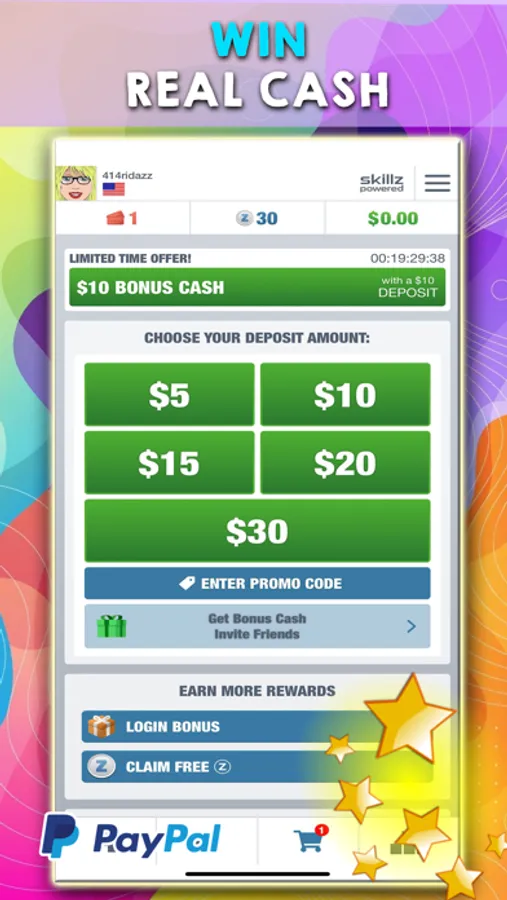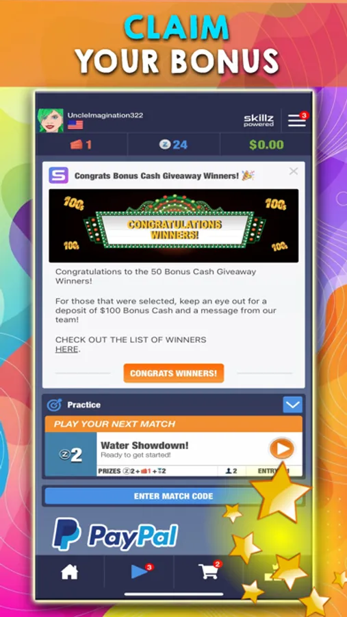 After downloading the game for FREE, you can start playing Practices or Cash Tournaments and win real money.
