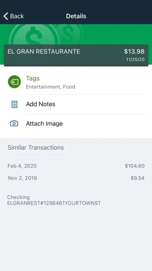 Keep your transactions organized by allowing you to add tags, notes and photos of receipts and checks.