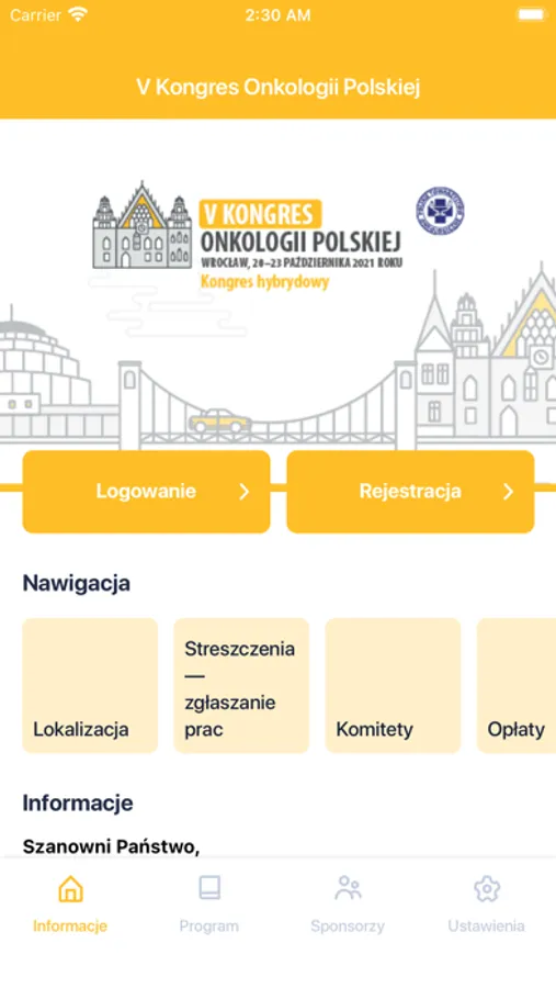 z wielką przyjemnością, w imieniu Organizatorów V Kongresu Onkologii Polskiej i swoim, mam zaszczyt zaprosić wszystkich lekarzy onkologów, lekarzy innych specjalności i przedstawicieli dziedzin związanych z onkologią, a także pielęgniarki i studentów medycyny do udziału w obradach Kongresu, który odbędzie się w dniach 20–23 października 2021 roku we Wrocławiu.