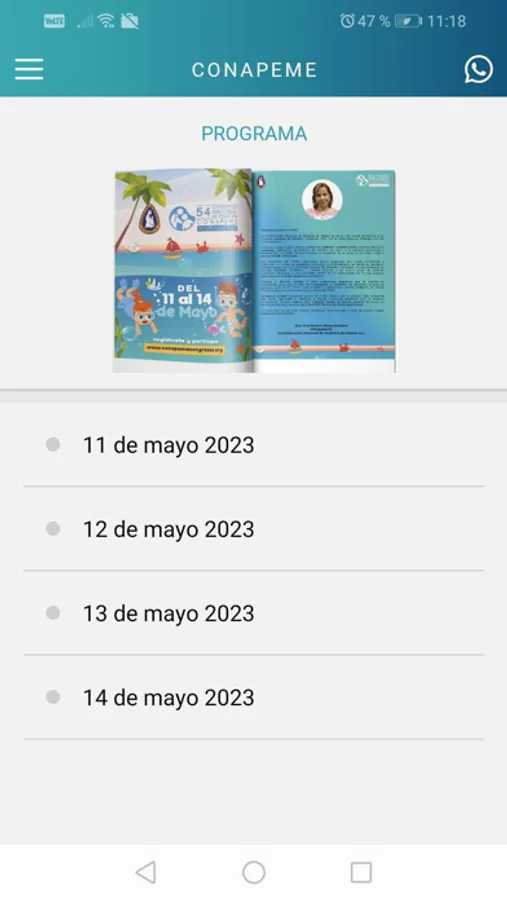 Aplicación informativa para mantenerte informado acerca del congreso nacional de pediatría que se llevará a cabo a partir del día 11 de Mayo de 2023.