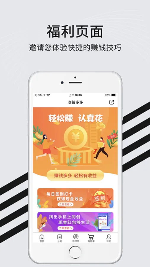 【签到赚现金】您每天可以到平台签到领取现金红包,大大增加了趣味性。