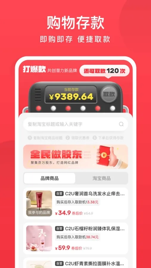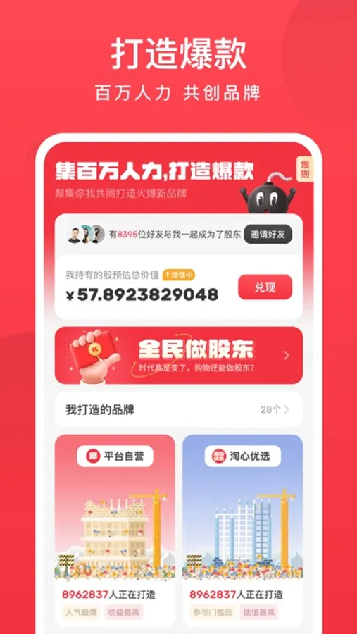 打爆款是一款让用户一起来为喜欢的品牌提供助力,加速品牌成长为品牌爆款的APP. 玩家在助力成功后,可得到海量的独家品牌优惠券,除此之外还可以获得的大量返利红包和奖品。在APP内,助力越多,获奖越多,而且还能和你的好友一起分享购物返利的乐趣。