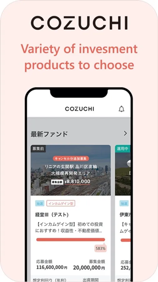 COZUCHI is a real estate investment type crowdfunding service that allows you to easily complete and manage your assets online from 10,000 yen.