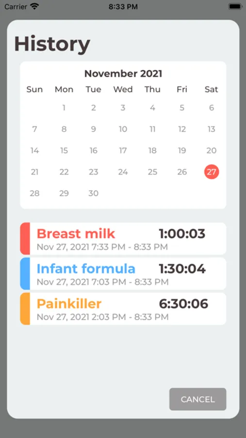 As an example of use, when you are feeding your baby breast milk and infant formula, you can quickly check how long it has been since the last feeding. You can also measure various things at the same time, such as sleeping time and the interval between taking painkillers after childbirth.