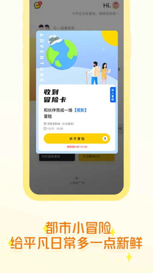 Hi.S是一款城市冒险APP,通过算法匹配灵魂伙伴和专属于你们的有趣活动,面对面真实社交,爱好再小众也能找到情投意合的伙伴,携手探索更多新鲜领域,开拓生活无限精彩。