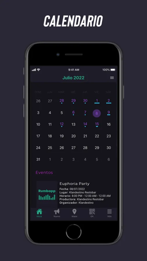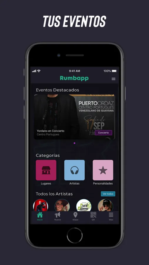 Rumbapp es un proyecto desarrollado inicialmente para Ciudad Guayana en forma de app movil que permite a los usuarios visualizar los eventos próximos a realizarse en la ciudad con toda su respectiva información. Dentro de la información de los eventos destacan los negocios o lugares asociados y los artistas los cuales forman parte de dicho evento como djs, animadores, entre otros. Permite también consultar la ubicación de los eventos en el mapa además de la información detallada de cada artista.