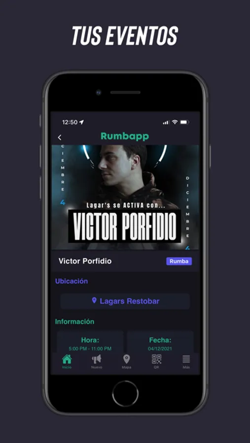 Conectar todos los eventos de la ciudad en una sola aplicación, proporcionar un medio innovador para la compra de tickets que facilite la administración y crecimiento de todos los eventos. Poseer un equipo confiable y proactivo que ofrezca paquetes de logística para los eventos aportando al mercado un producto potente y efectivo.Rumbapp es un proyecto desarrollado inicialmente para Ciudad Guayana en forma de app movil que permite a los usuarios visualizar los eventos próximos a realizarse en la ciudad con toda su respectiva información. Dentro de la información de los eventos destacan los negocios o lugares asociados y los artistas los cuales forman parte de dicho evento como djs, animadores, entre otros. Permite también consultar la ubicación de los eventos en el mapa además de la información detallada de cada artista.