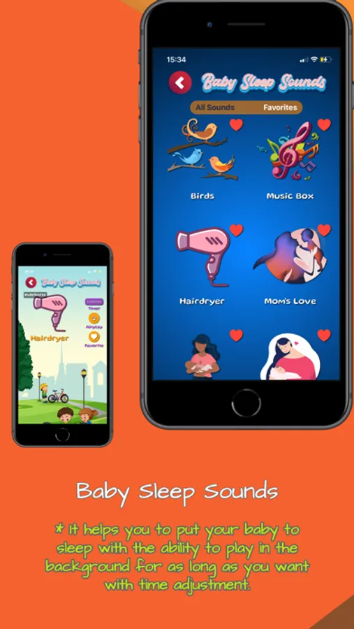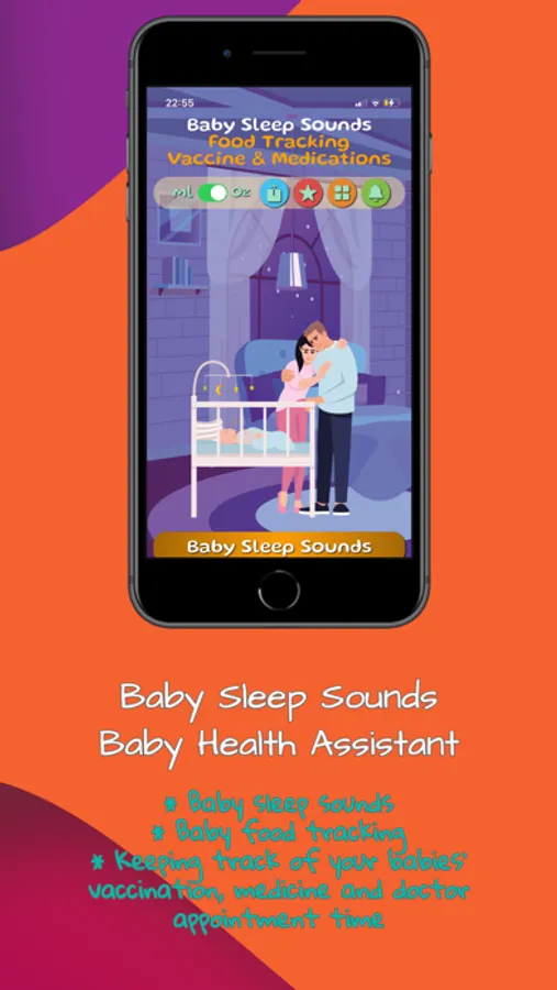 * Possibility to put your baby to sleep with different sounds with our 72 different sound content.